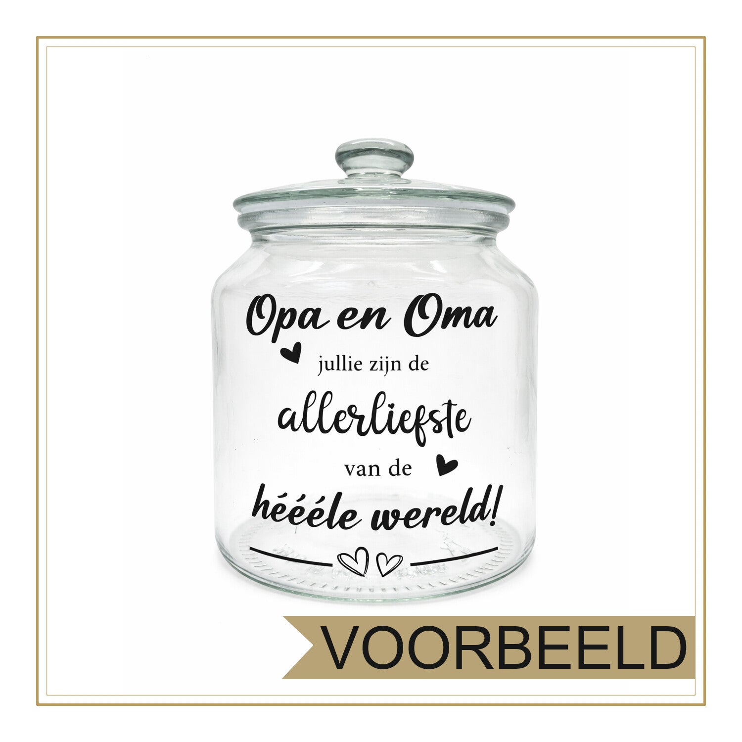 Verras jouw opa en oma met een liefdevolle en persoonlijke sticker. Deze prachtige vinyl sticker met de tekst “Opa en Oma jullie zijn de allerliefste van de héééle wereld” is perfect om op een glazen pot, cadeautje of andere gladde oppervlakken te plakken.